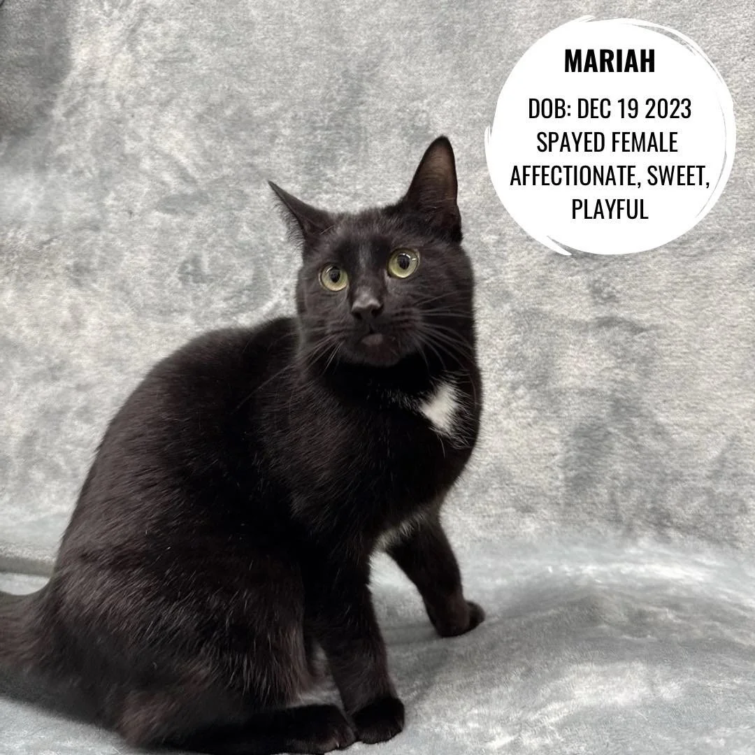 Meet Mariah! Mariah is an adventurous, outgoing girl with a playful and confident personality. She does great with other cats and loves exploring every corner of the shelter. Mariah enjoys attention and pets, though she also likes doing her own thing. She can be a little sassy when it’s time to go back to her kennel, but it just adds to her charm. In a home environment, she’s likely to become even more affectionate as she settles in.