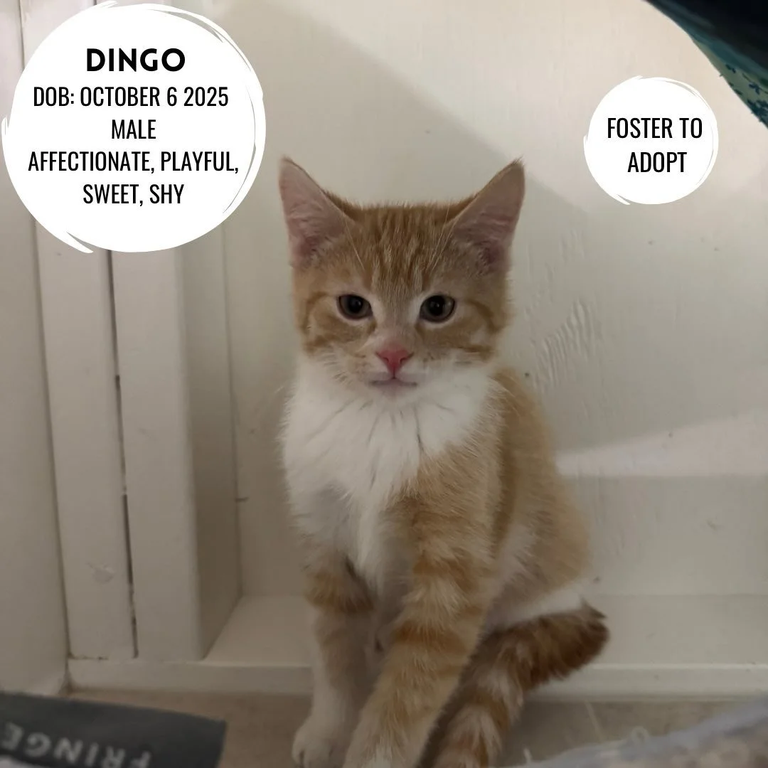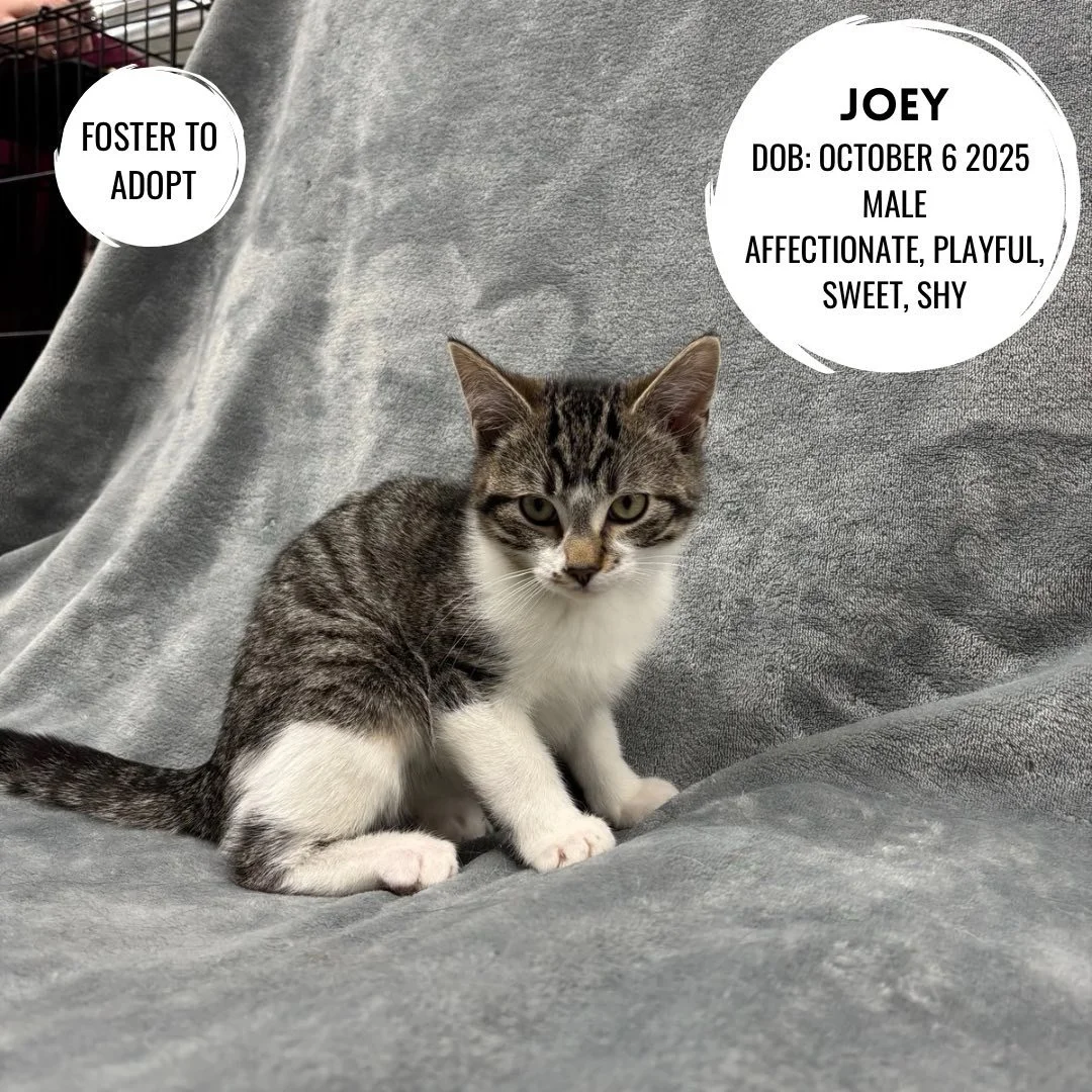 Roo is a goofy little boy with endless energy and charm. He loves chasing toys, zooming around to burn off his wiggles, and then crashing into cuddle mode. He’s a chest-snuggler and a purr machine. He always tries to meow… but it usually comes out as the cutest little whisper, paired with his goofy smile. Roo is playful, affectionate, and full of joy.
