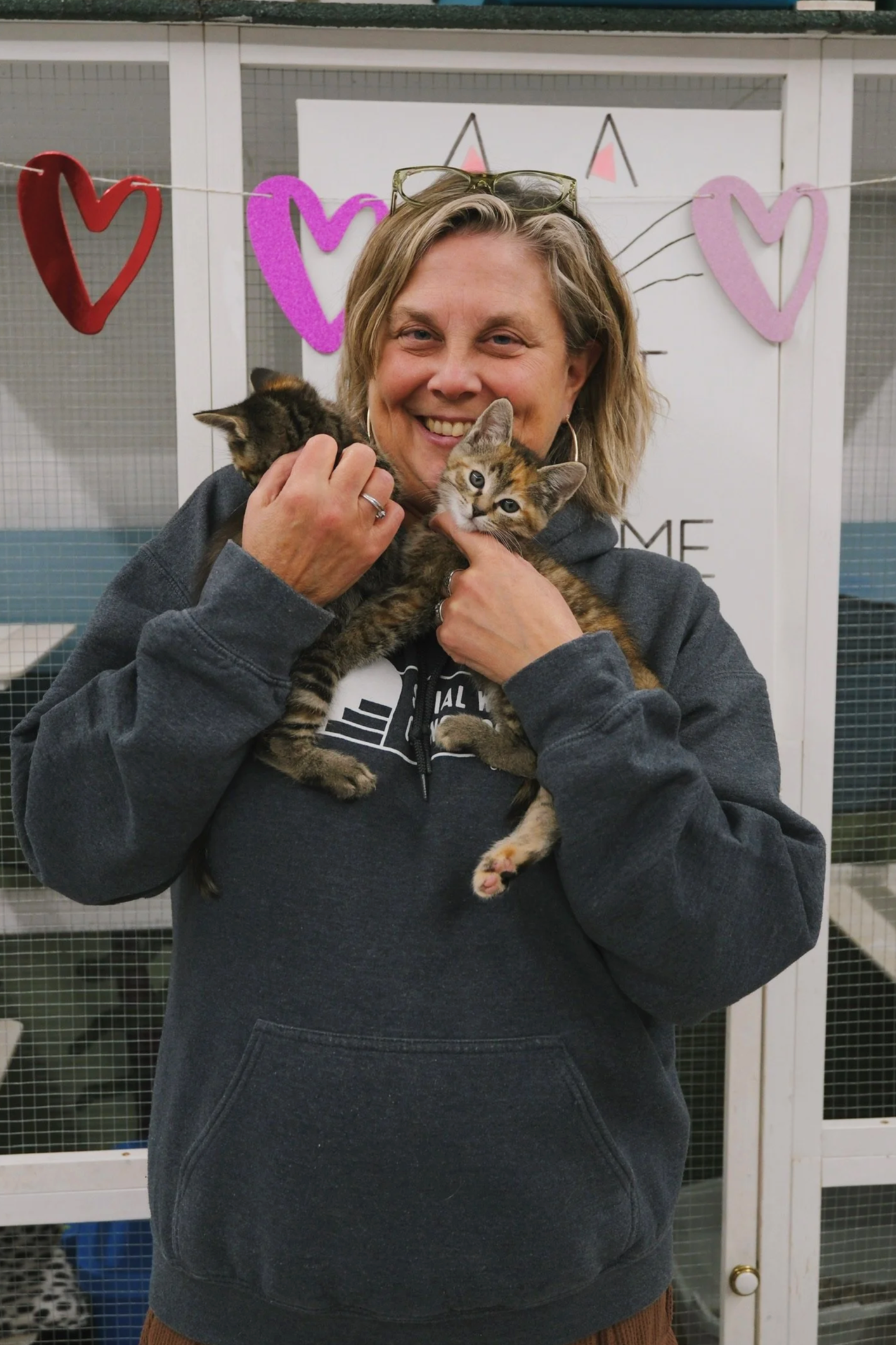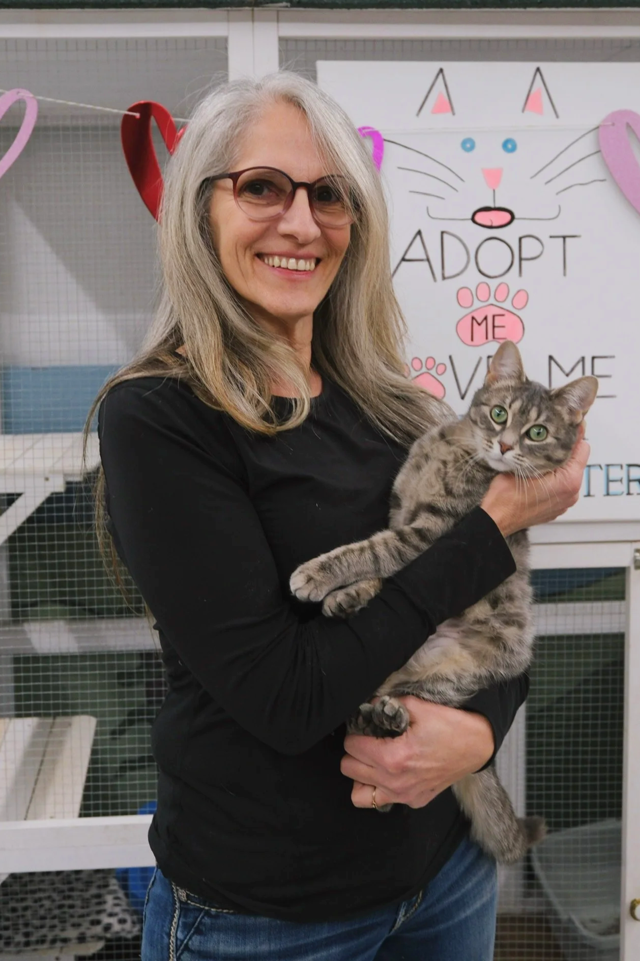 Janet oversees all of our adoptions, helping match cats with the right homes and guiding adopters through every step of the process. She also helps organize transfers to other rescues and coordinates fundraising events to support the shelter’s programs and initiatives. Janet is at the shelter multiple times a week providing hands-on care and attention with the cats. Janet plays a key role in keeping the day-to-day operations running smoothly, ensuring everything behind the scenes stays organized, efficient, and on track.