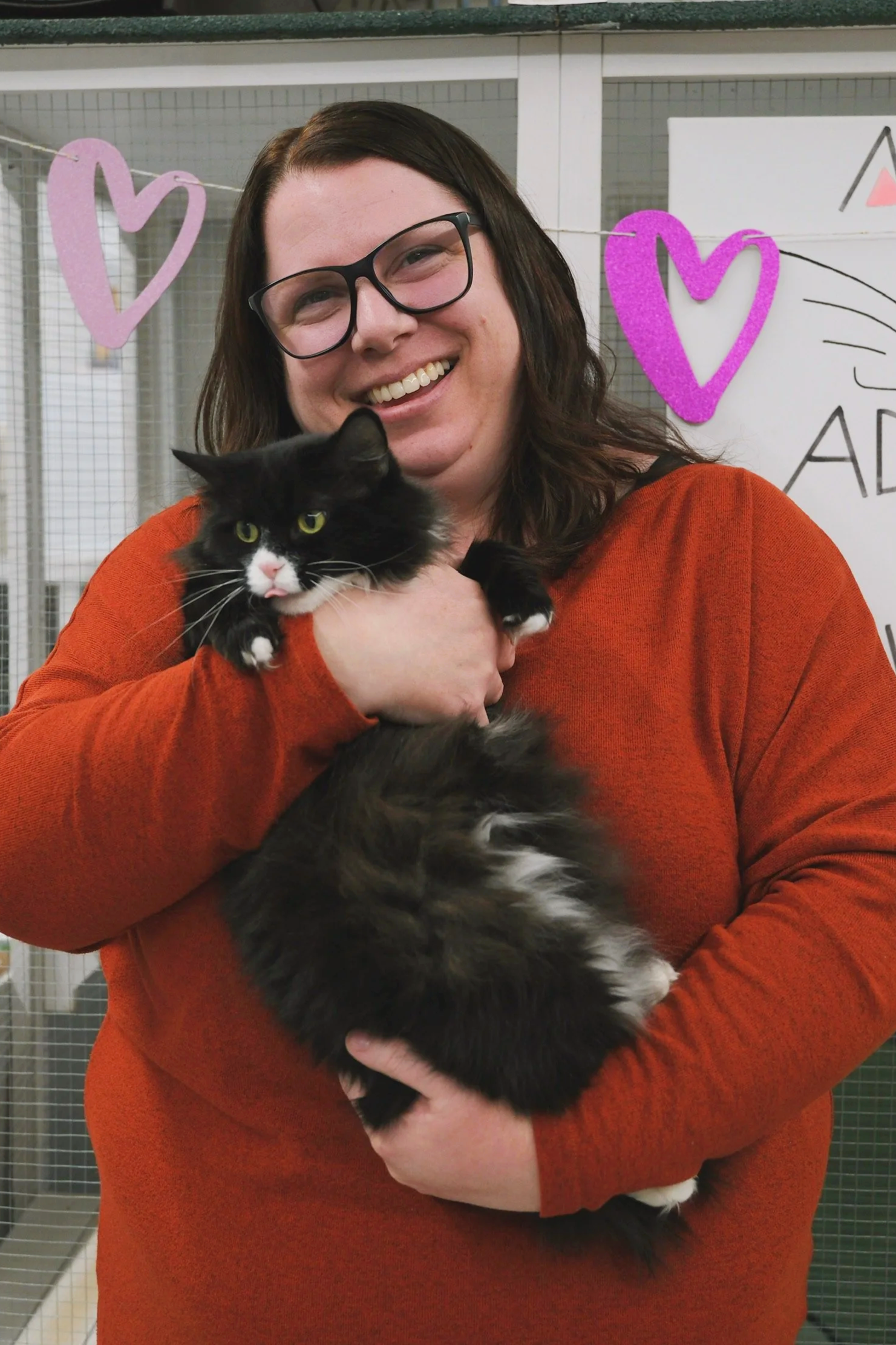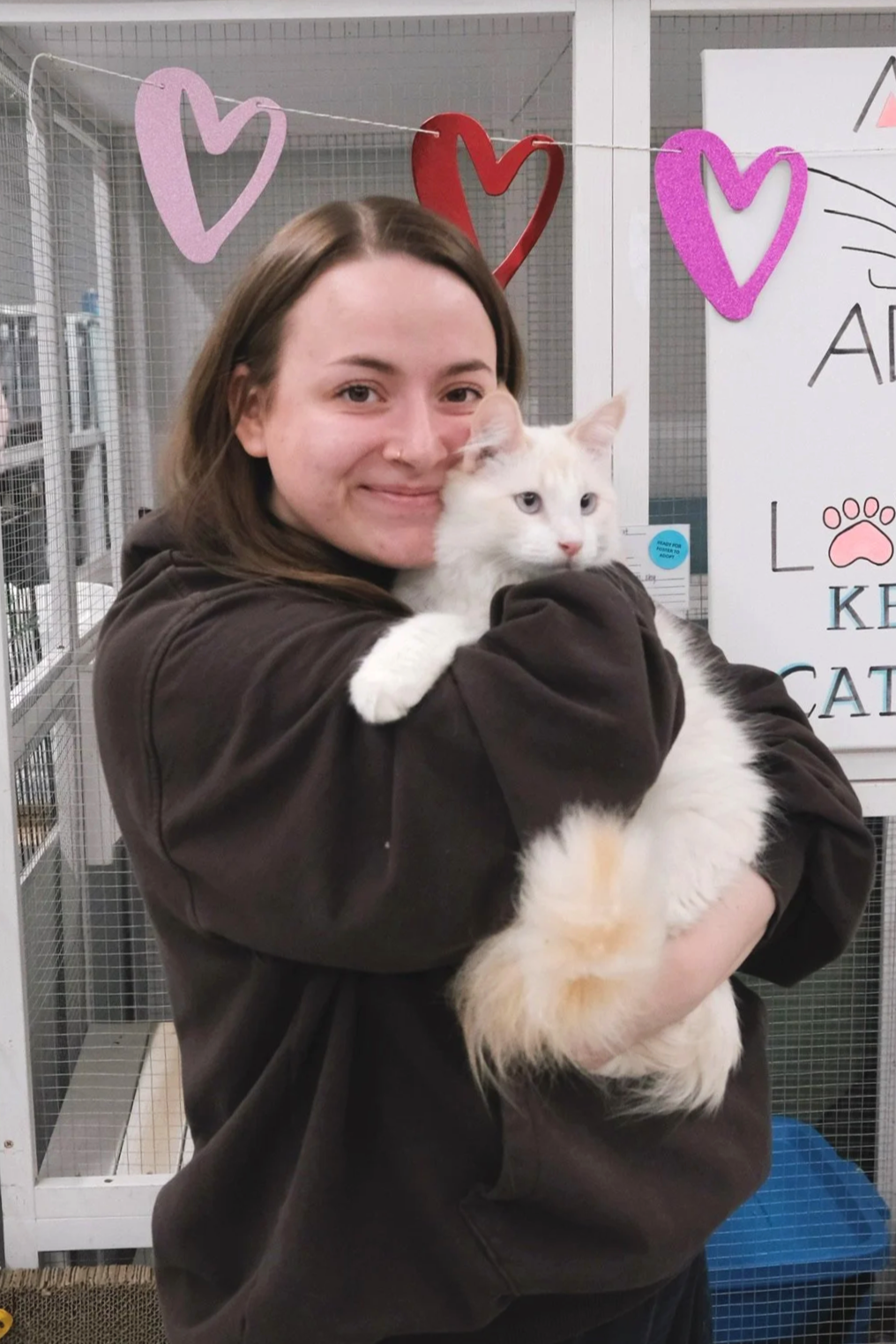 Autumn helps manage the shelter’s social media, creating engaging videos and capturing photos that highlight each cat’s unique personality to help connect them with potential adopters. Autumn is at the shelter multiple times throughout the week working hands-on with the cats ensuring they are getting the attention and love they deserve. She is also actively involved in fundraising initiatives, contributing creative ideas and helping bring them to life. Autumn’s creativity, organization, and enthusiasm make her a valuable part of the team.
