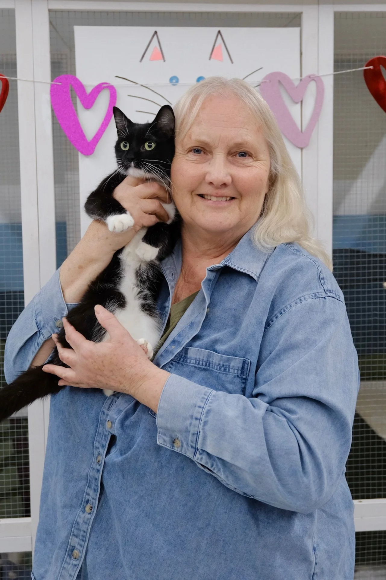 Jackie plays a key role in supporting the shelter through fundraising initiatives and online sales. She also assists with adoptions, helping cats find loving homes, and is actively involved in the day-to-day care of the cats. Jackie is at the shelter multiple days a week, working hands-on with the cats and providing the daily care they need. Her willingness to jump in wherever is needed makes a meaningful difference for both the cats and the team.